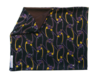 dunkelgrau-mélierter stoff mit violett-gelbem muster