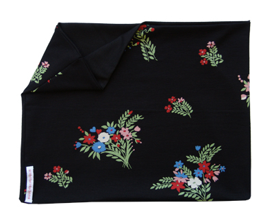 schwarzer stoff mit blumenmuster in rot, grün, blau, rosa und weiss