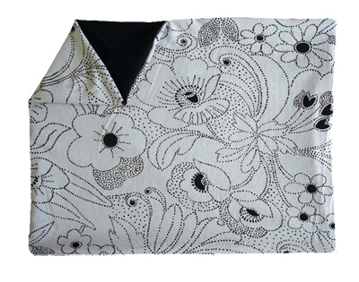 bläulich-hellgrauer stoff mit gedrucktem hennamuster in schwarz