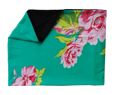kräftiges türkis mit aufgedruckten grossen rosa blüten