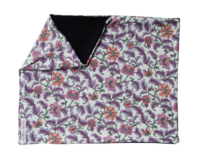 weisser stoff mit aufgedrucktem blumenmuster in sanften lila-tönen und mint