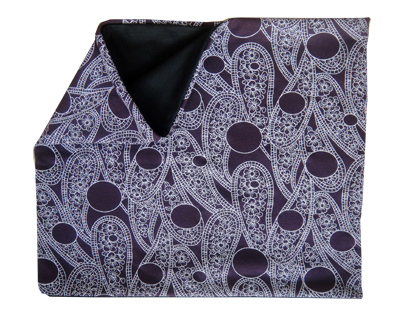 dunkelvioletter stoff mit feinem, aufgedrucktem weissen blumenmuster