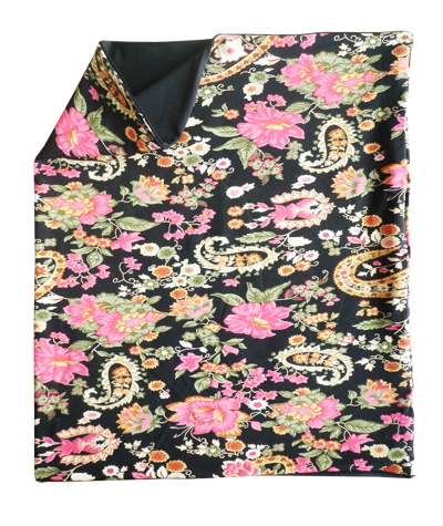 dunkler stoff mit blumenmuster in rosa, grün und braun