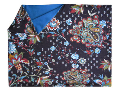 brauner stoff mit feinem asiatischen blumenmuster in blau, grün, rot und beige