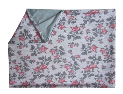 grau mellierter stoff mit alt-rosafarbenem rosenblumenmuster