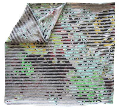 florales ornament in grüntönen, überlagert mit einem hellgrauen streifenmuster