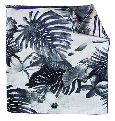 blattmuster auf weiss in graustufen, zitronengelber streifen, wiederholtes graustufenmuster